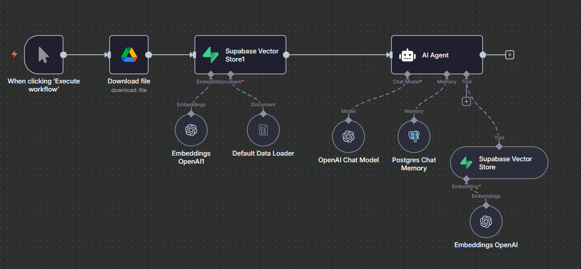 Default Data Loader → OpenAI Embeddings → Supabase Vector Store :